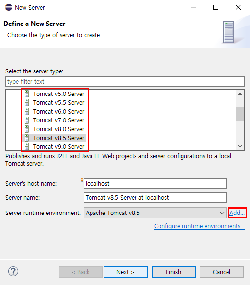 이클립스 톰캣 서버 추가 방법
